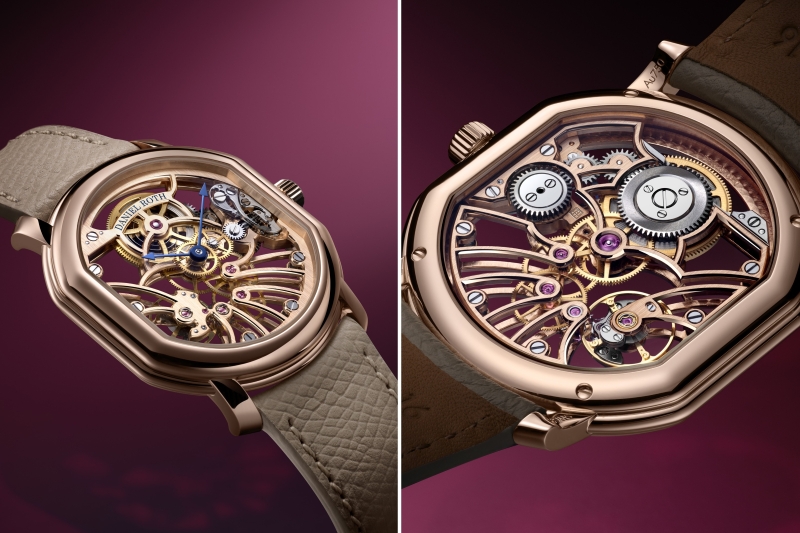 Daniel Roth’s latest release reinterprets one of the maison’s most storied collections through a skeletonised architecture, revealing the mechanical soul of the new Calibre DR002SR, conceived and crafted entirely at La Fabrique du Temps Louis Vuitton. To achieve distinct visual depth, the movement is sculpted from solid 18-carat 5N rose gold, creating a rich, radiant glow against the sharp precision of black-polished steel components. It also honours the technical lineage of its predecessor, retaining the 4 Hz frequency, free-sprung balance and a 65-hour power reserve, all within the elegant contours of the brand’s iconic double-ellipse silhouette.