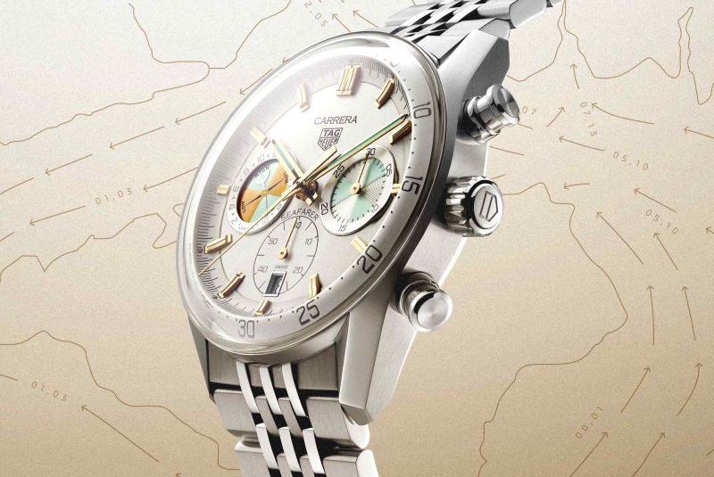 Following the 2023 revival of the Skipper, Tag Heuer continues its maritime odyssey in 2026 with the highly anticipated return of the Seafarer. Dating back to 1949, the timepiece was sold to sailors and outdoorsmen who needed to know high and low tide times at a glance. The modern Seafarer builds on the glassbox platform in a robust 42mm steel case. The new in-house Calibre TH20-04 was developed to incorporate the tide indicator function, which can be activated with the pusher at 9 o’clock. An opaline champagne dial provides the backdrop of "Intrepid Teal" accents, named after the 1967 America’s Cup-winning yacht that inspired Jack Heuer to create the original Skipper the following year.