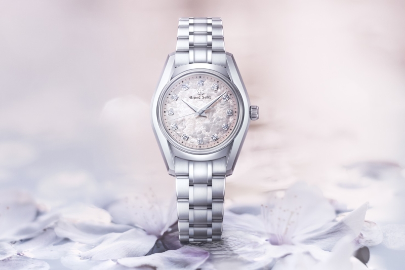 Each spring in Japan, a second act of beauty begins as the peak of the sakura season wanes. As the cherry blossoms surrender to the breeze, their petals find a new home on the surface of winding rivers, gathering in such density that the water disappears beneath a soft, undulating carpet of pink. These are called hana-ikada, or flower rafts. This is precisely the romantic scene that Grand Seiko evokes with the STGF387 from the Heritage Collection. Diamonds are arranged symmetrically on the dial, achieving a harmony of aesthetic beauty and legibility, and its 26mm profile allows the watch to blend easily with any ensemble.