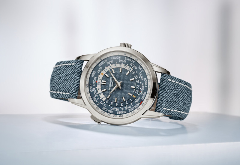 Normally, World Timers equipped with a date indicator require the wearer to adjust both the time zone and date independently when travelling. To make the user experience as fuss-free as possible, Patek Philippe introduced a patented world first: a differential system that couples the date display with local time so there is no correction needed, even when crossing from West to East (where you go back a day). The new date mechanism functions in either direction, moving backwards or forwards reliably without risking damage to the movement. The date is indicated on the outer ring via a transparent glass hand — also a first at Patek Philippe — with a hammer-shaped tip in red lacquer.